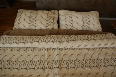 POŚCIEL WEŁNIANA CAMEL CIEMNY + JASNY WARKOCZ 200x200 + PODKŁAD