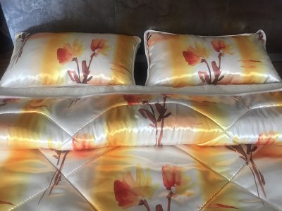 POŚCIEL Z WEŁNY LAMY ALPAKI + SATYNA ŻÓŁTE TULIPANY 180x200